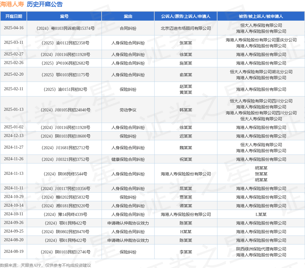 本站消息,根据天眼查APP显示,近日公布了一则海港人寿保险股份有限公司作为被告/被上诉人的开庭公告,详细内容如下: